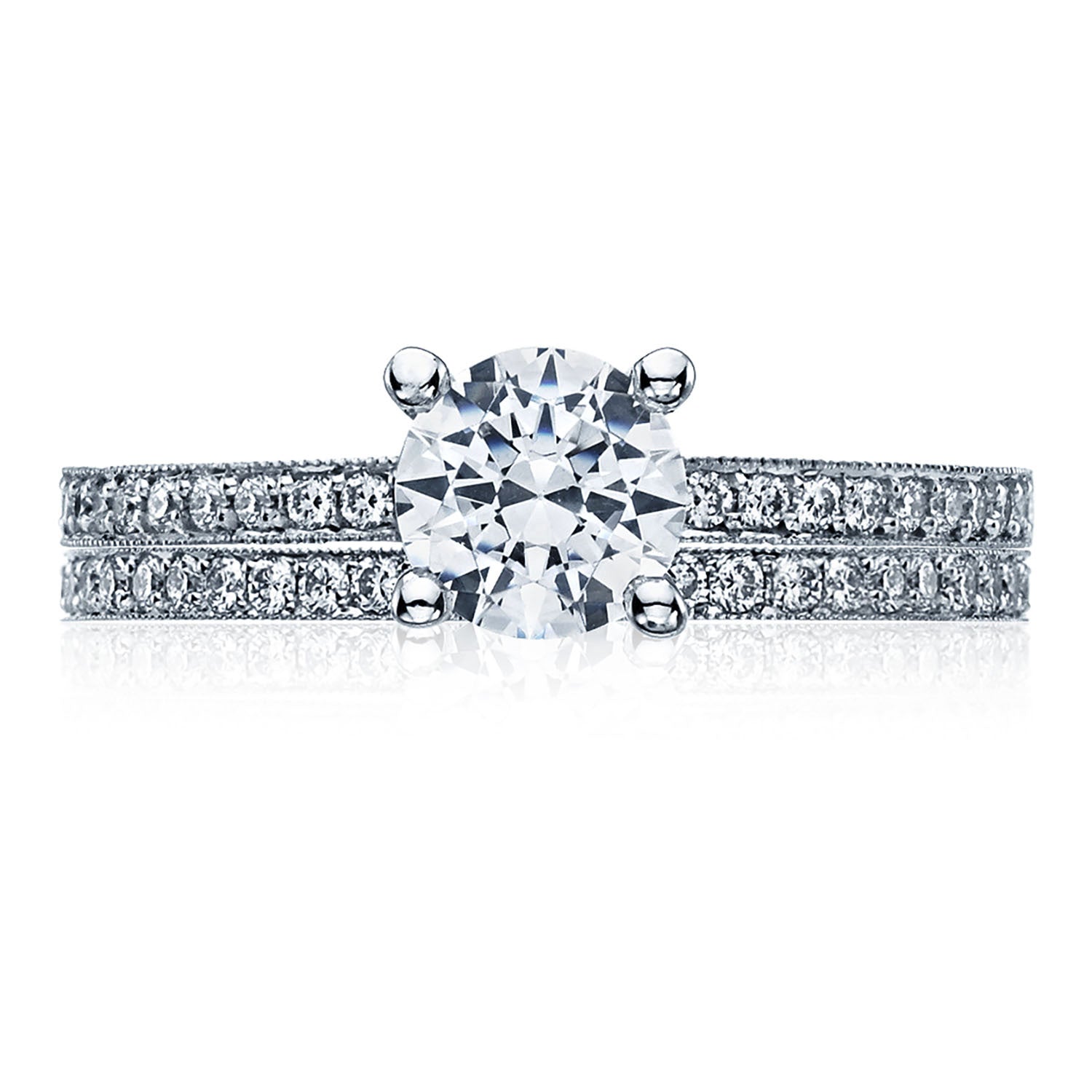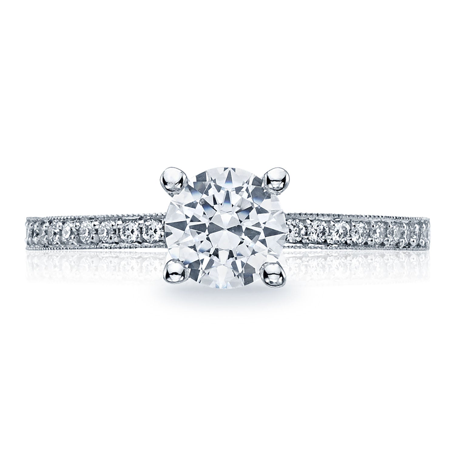 | Additional Description | Pave embellishes the ceiling, while hand-engraved Sculpted Crescent fabric with milgrain detailing lines the innerface of the ring. The solitaire sits on a contemporary Classic 360 foundation. |