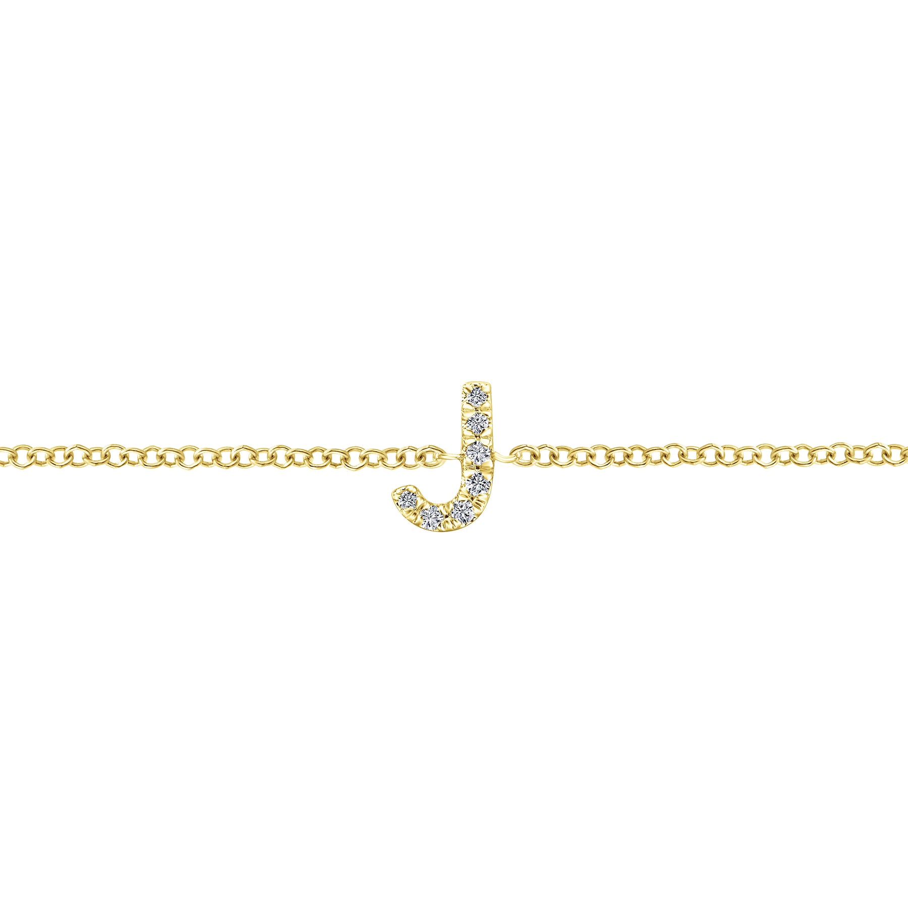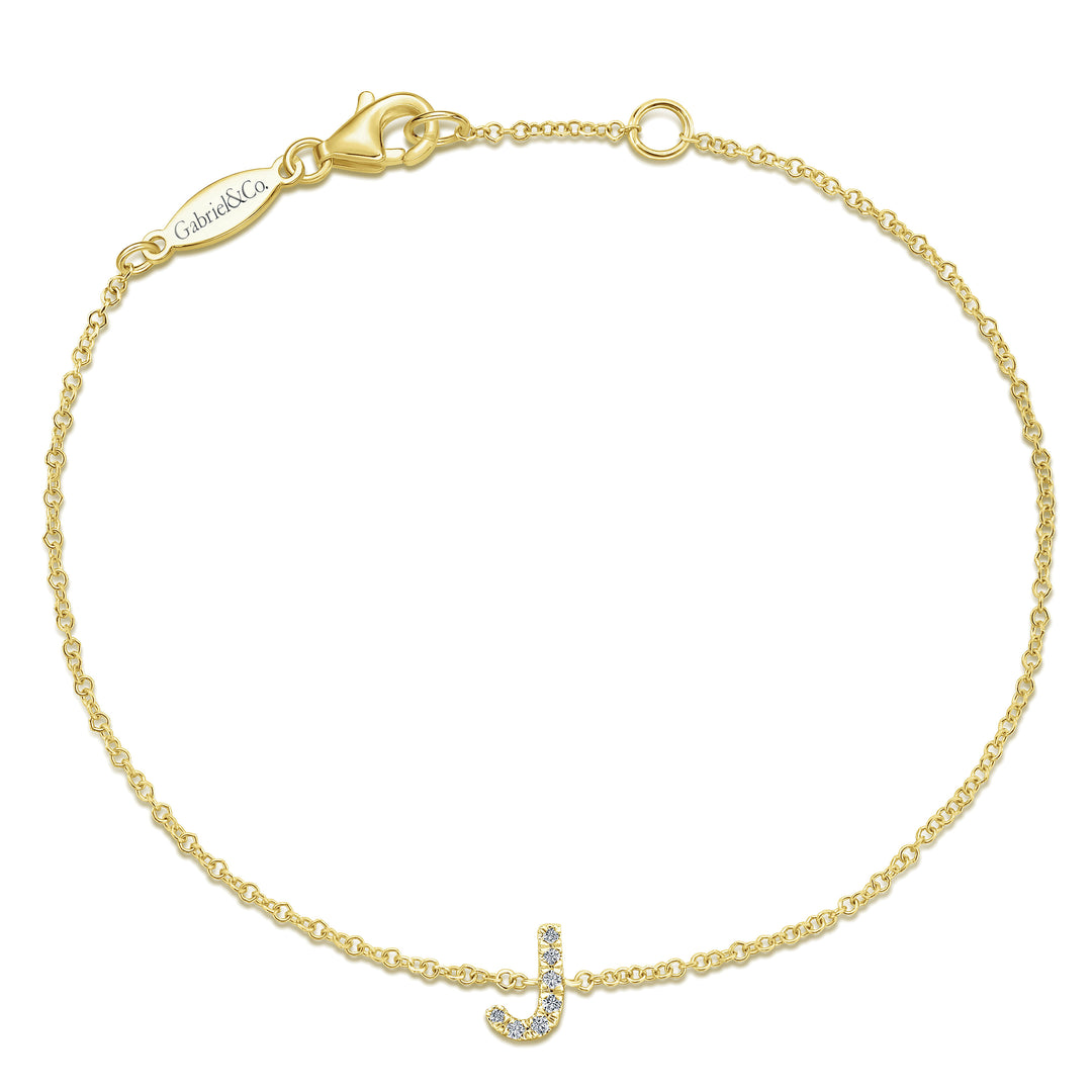 Delicate 14K yellow gold chain bracelet accented with the letter ?J? in brilliant sparkling diamonds. This bracelet makes for a beautiful foundation piece for any woman?s jewelry collection.