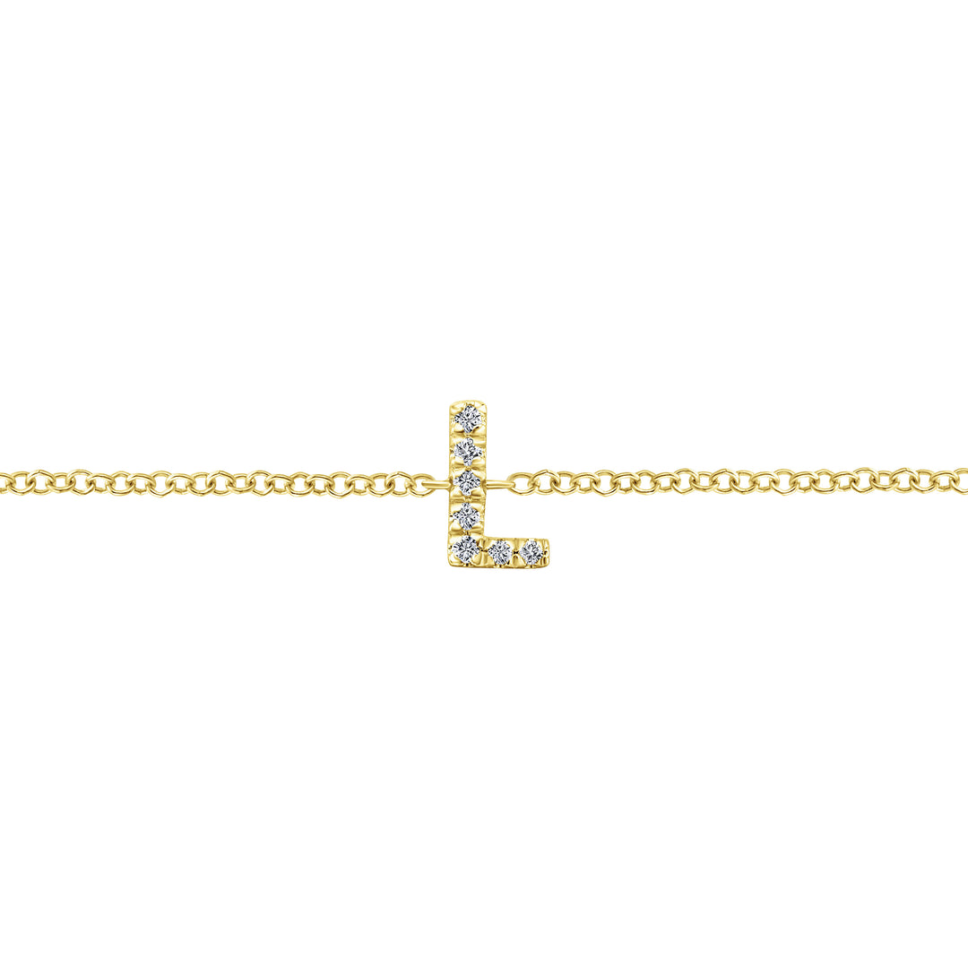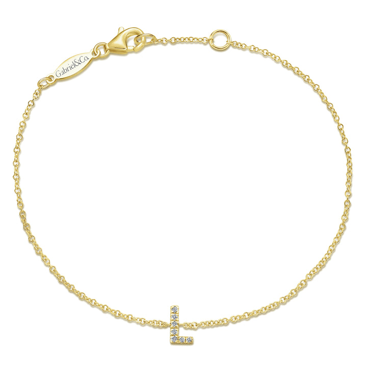 Delicate 14K yellow gold chain bracelet accented with the letter ?L? in brilliant sparkling diamonds. This bracelet makes for a beautiful foundation piece for any woman?s jewelry collection.