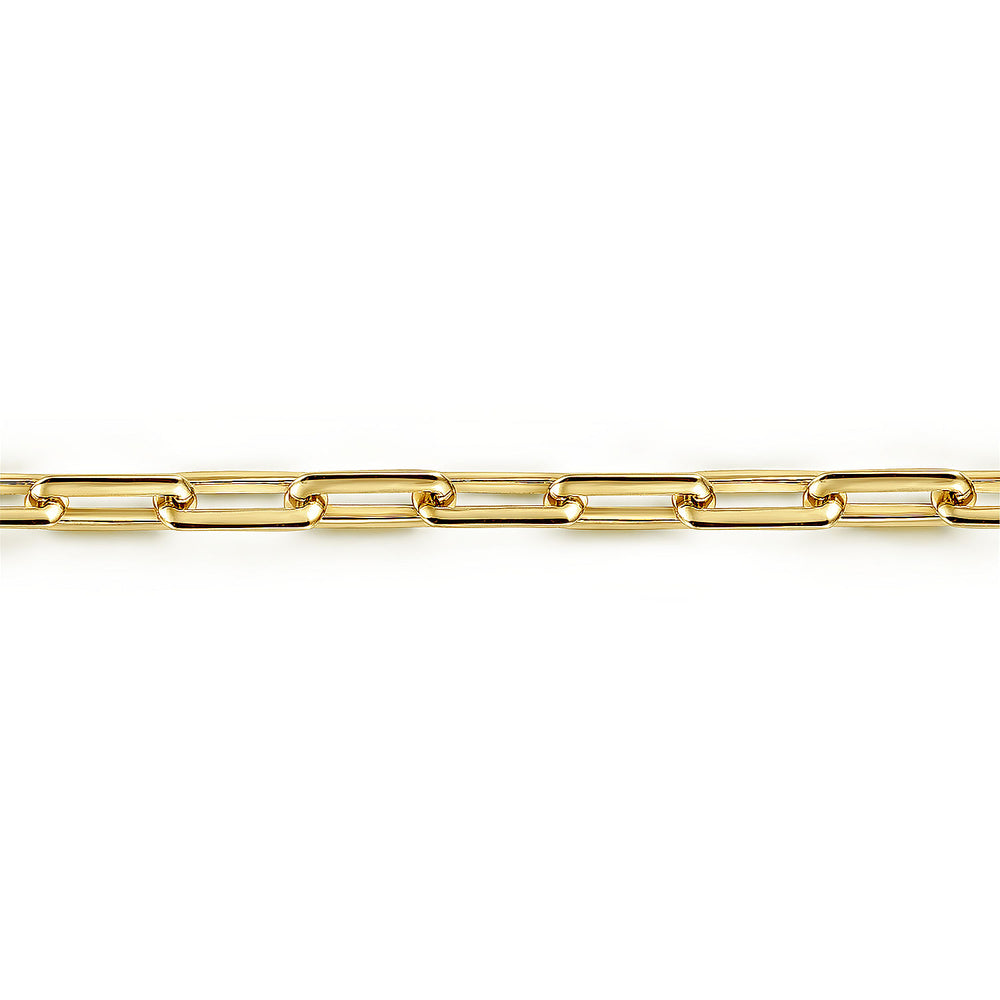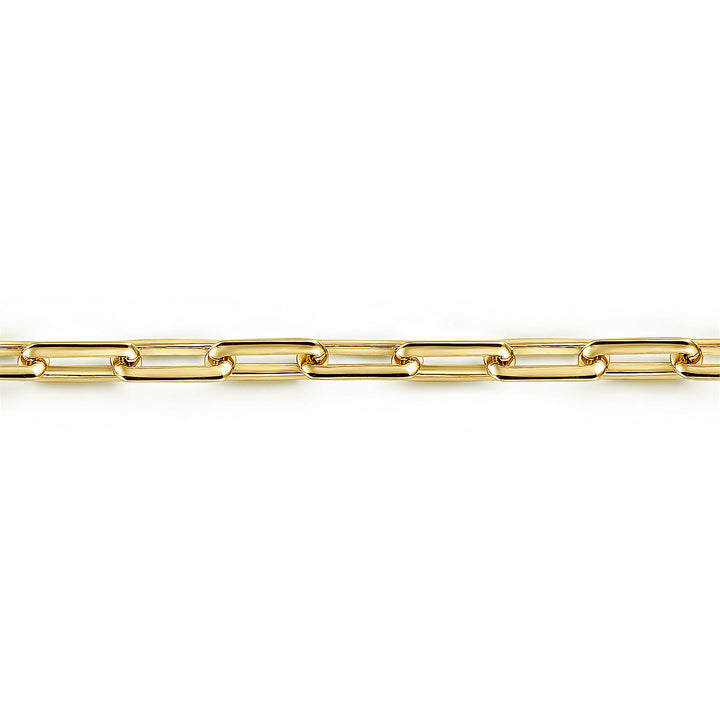 Convey your timeless style with a flash of your wrist. This bracelet for him boasts long rectangular links that bring a modern appeal to the classic chain link motif. Exceptionally crafted in 14K yellow gold.