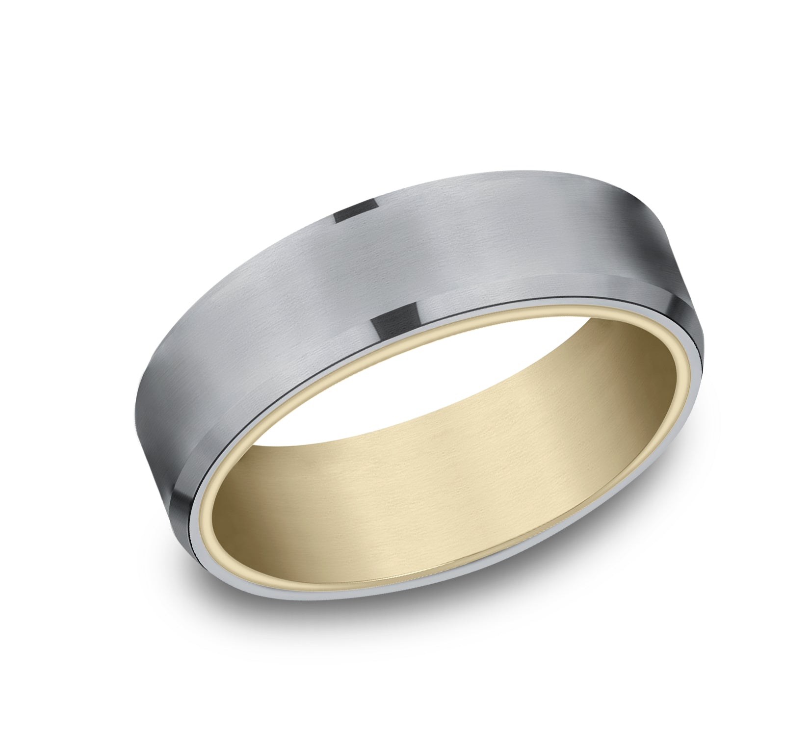 | Additional Description | 6.5mm, Comfort fit 14K Yellow Gold and Grey Tantalum Satin finish, slightly beveled edges |
