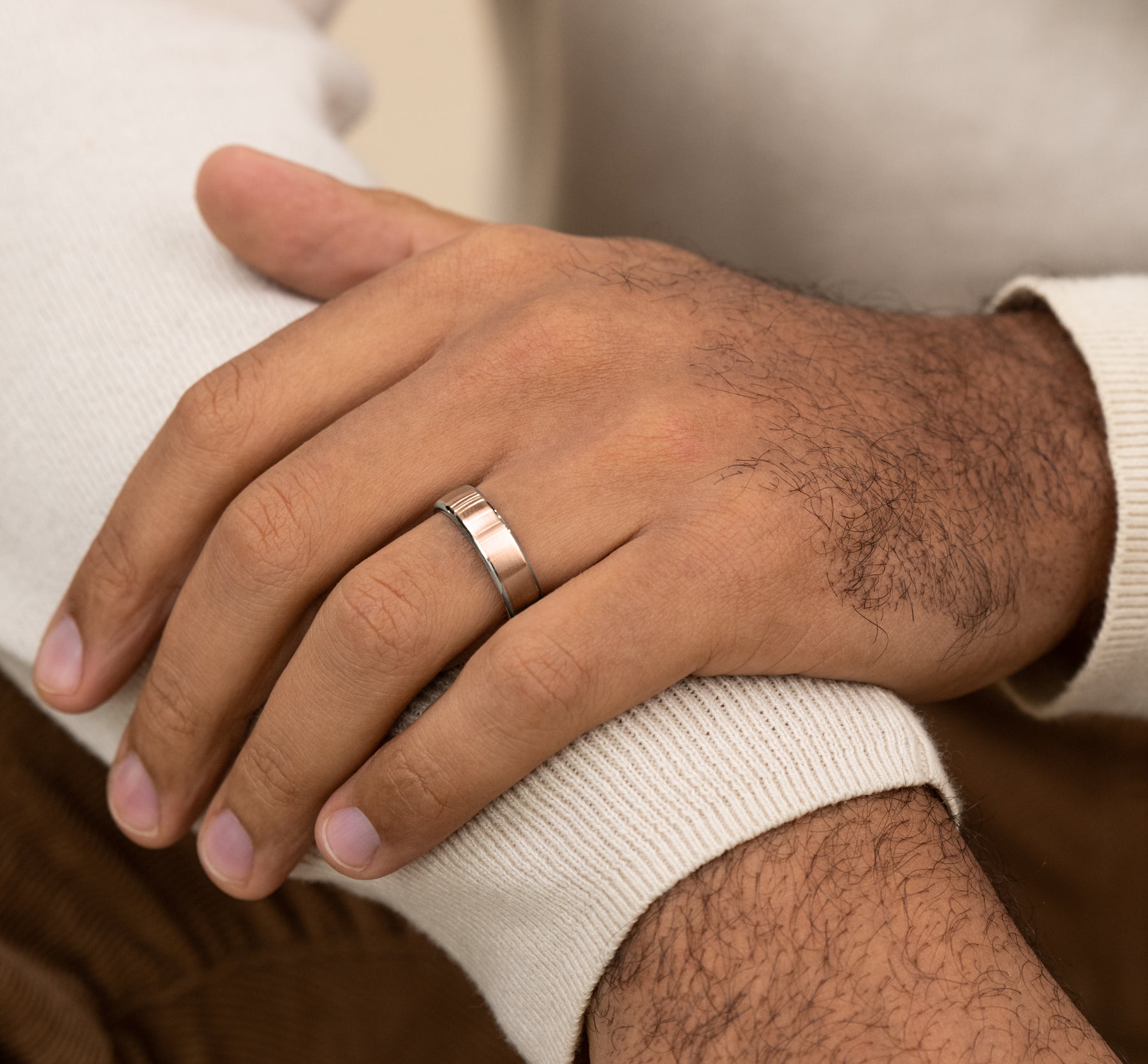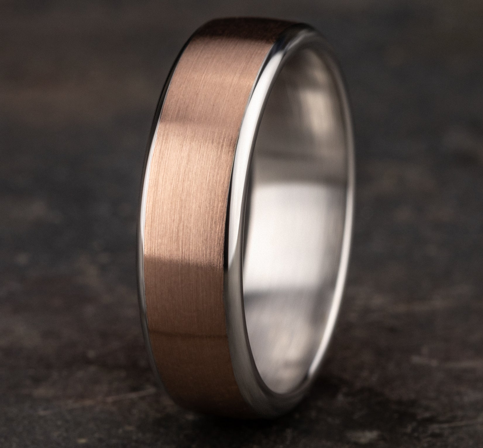 | Additional Description | 6.5mm, European comfort fit 14K White and Rose Gold Satin finish, contrasting edges |