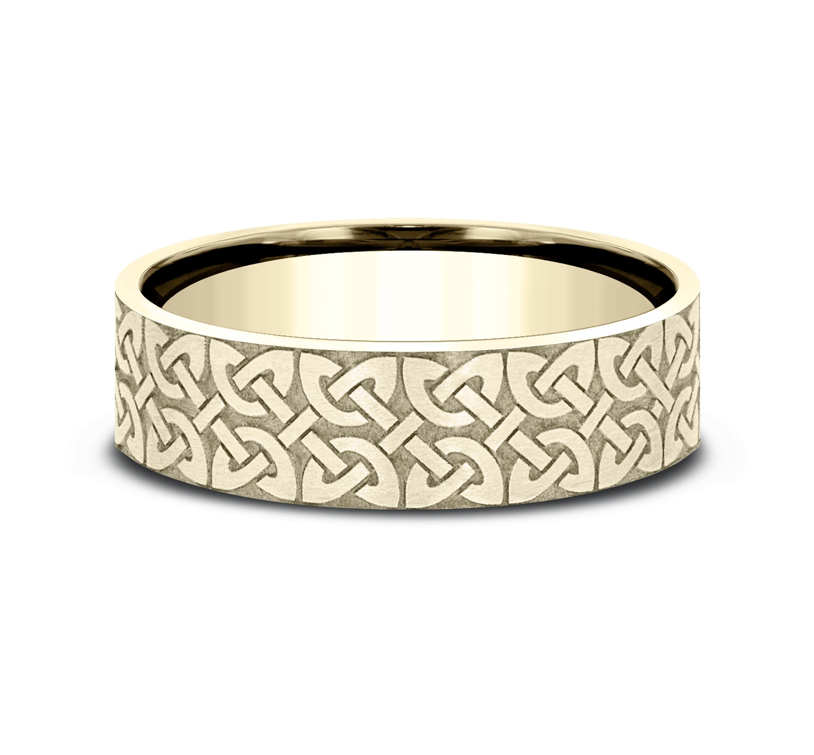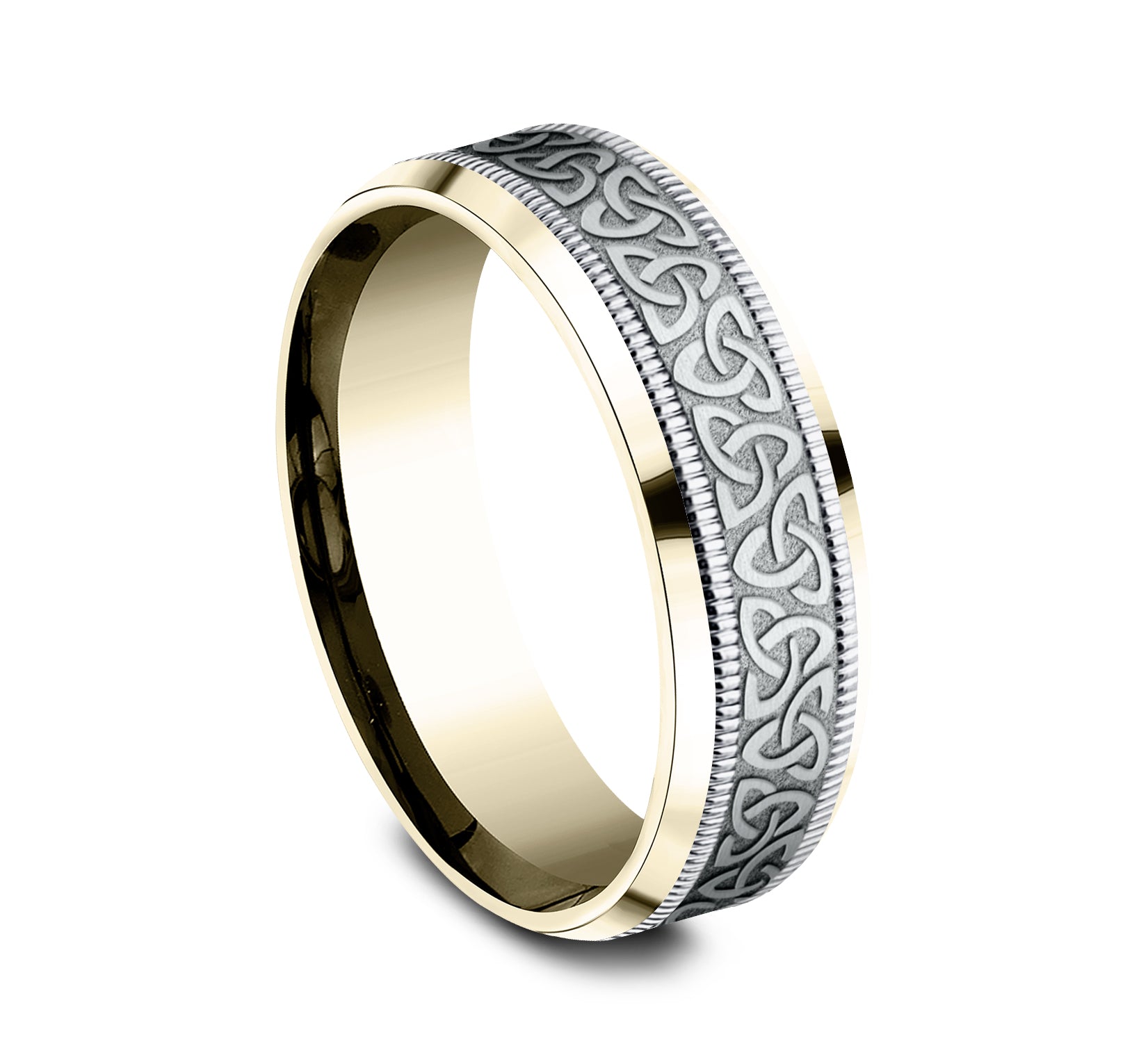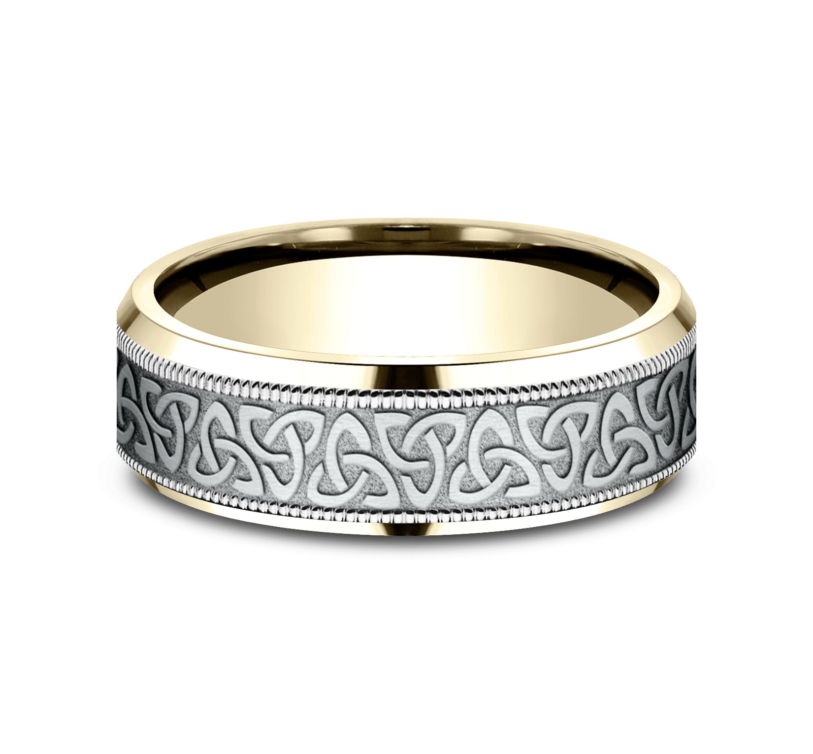 | Additional Description | 7mm, Lightweight comfort fit 14K Yellow and White Gold Celtic knot pattern with milgrain detail, polished bevel edges |