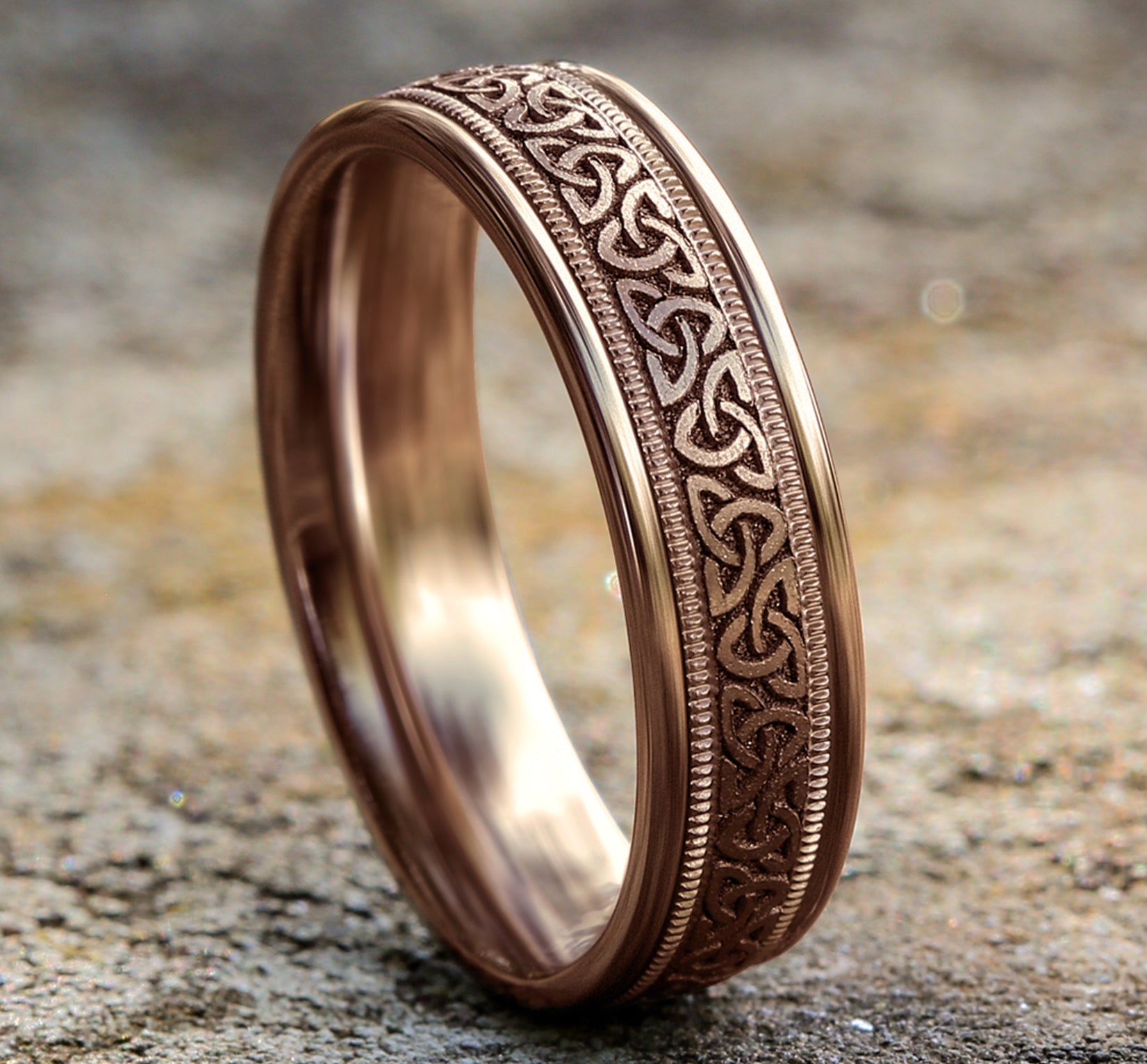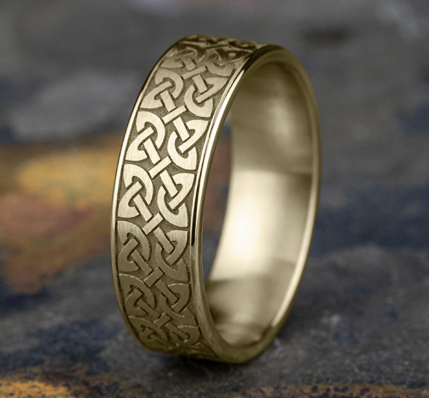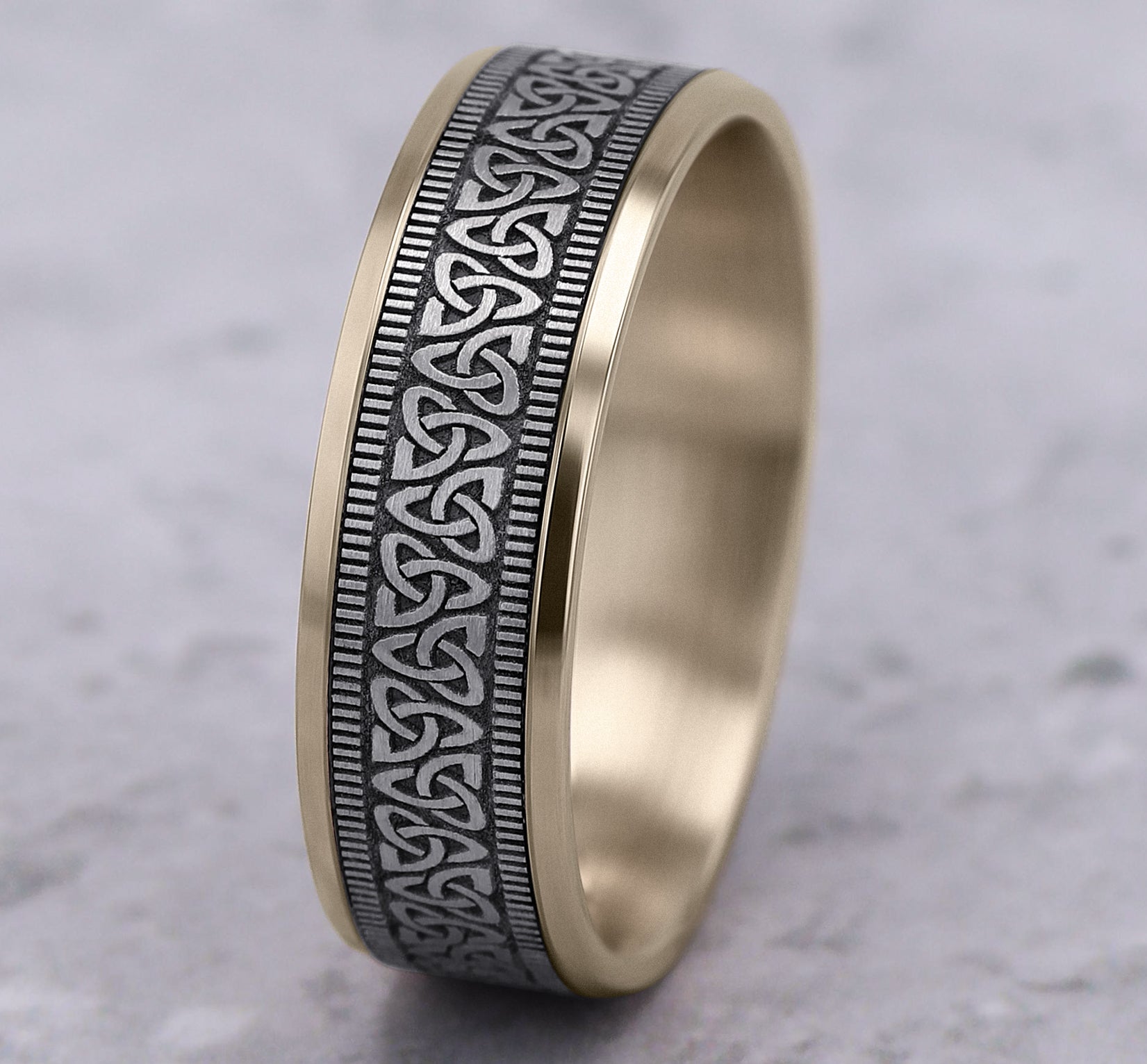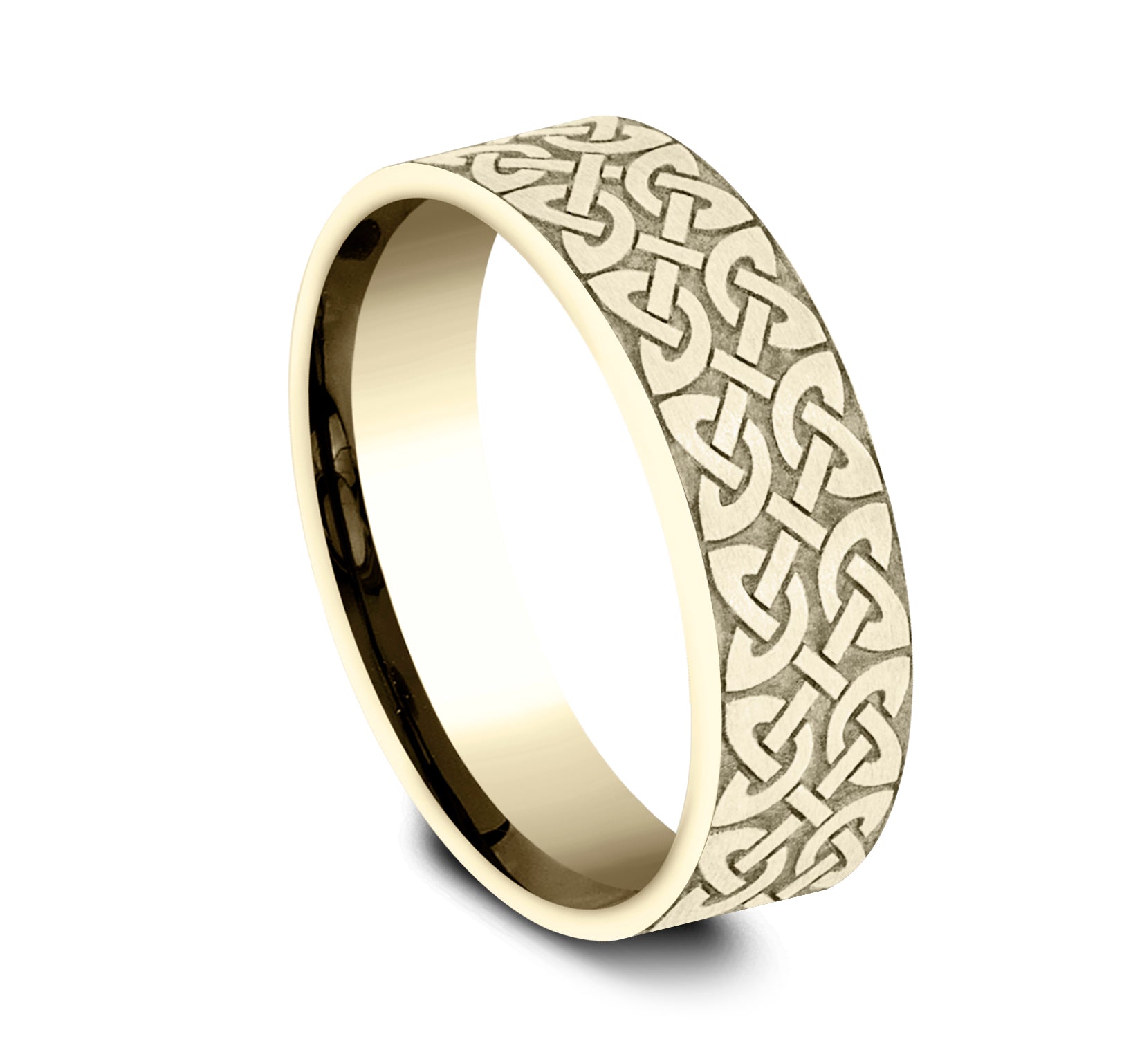 | Additional Description | 7mm, Lightweight comfort fit 14K Yellow and White Gold Celtic knot pattern with milgrain detail, polished bevel edges |